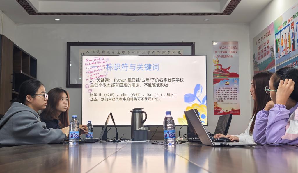“给变量、函数起名字,就像给我们身边的事物贴标签,但有自己的规则。”在面向新年龄段学生的课堂上,志愿者从“标识符与关键字”入手,用生动的比喻,引导孩子们理解编程语言的基本语法。